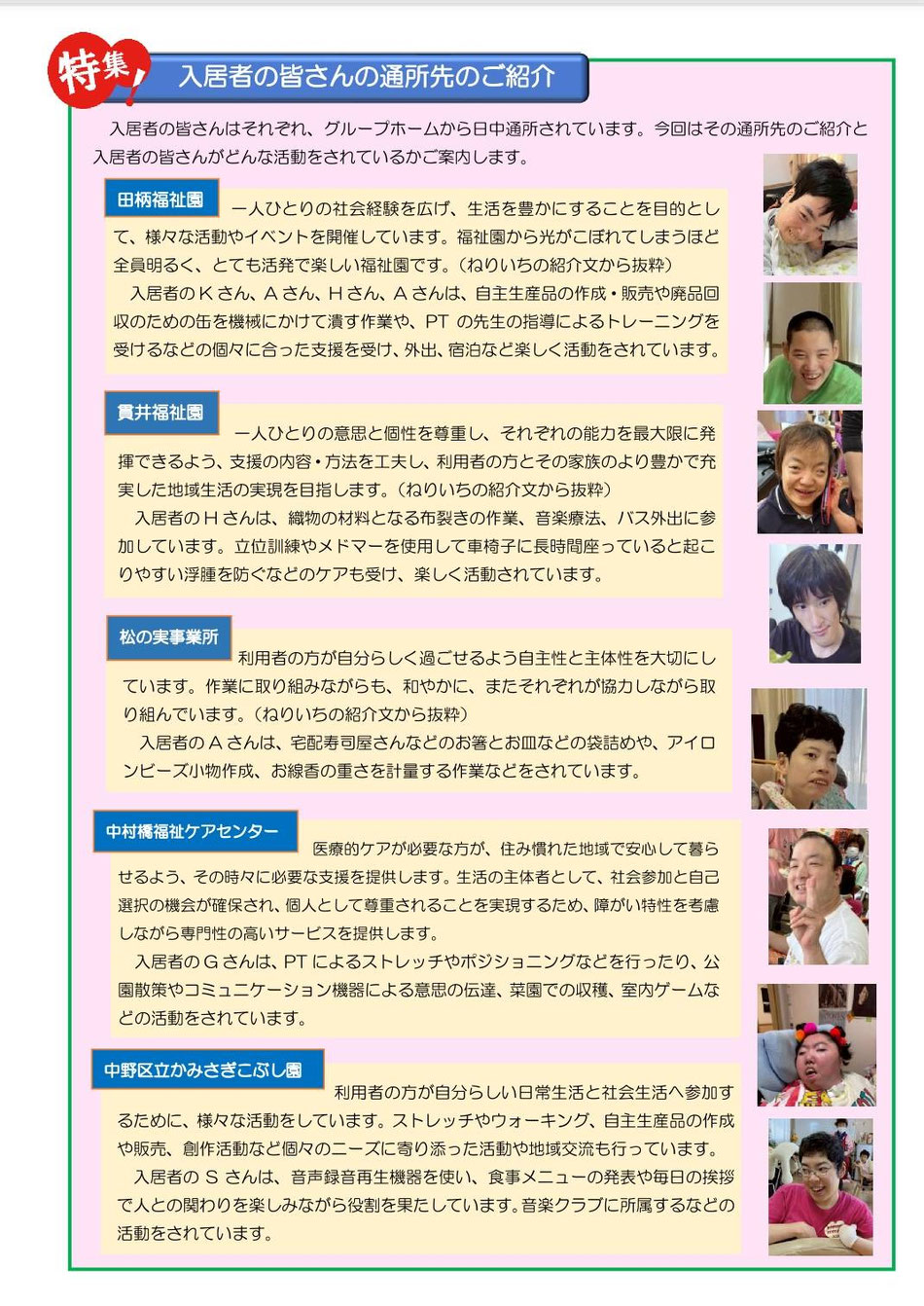 【田柄福祉園、貫井福祉園、松の実作業所、中村橋福祉ケアセンター、中野区立かみさぎこぶし園】