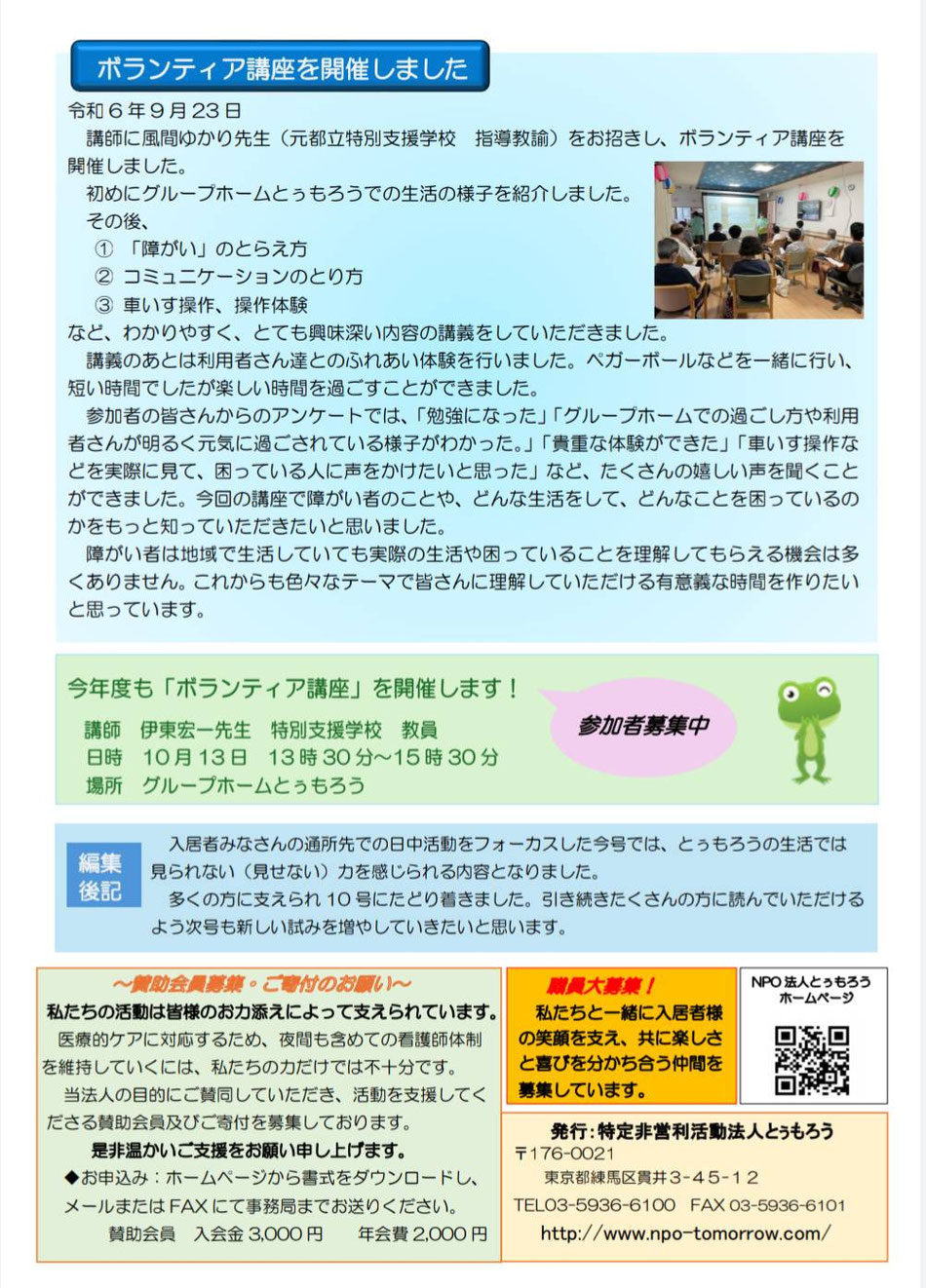 理事長挨拶(グループホームとぅもろうは8年目を迎えました)